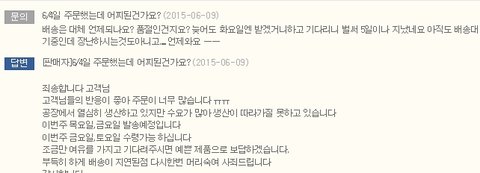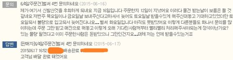 늦어진다며 13일 후 6/17일에 받았습니다 그동안 문의는 남겼지만
