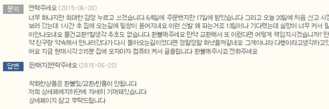 신고 집에 들어와 바로 문의글에 환불해달라 전화달라고 남겼는데