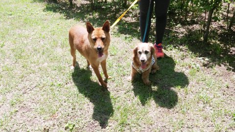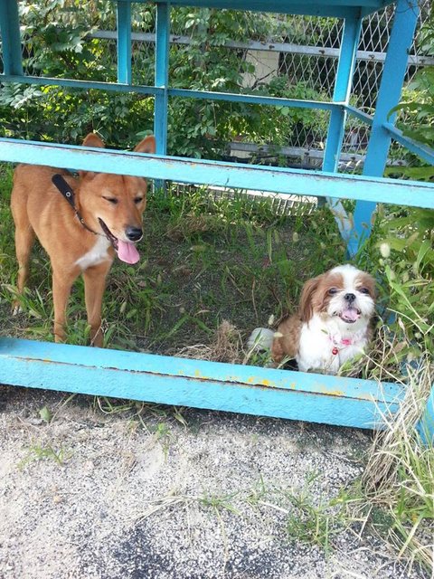 얘는 그냥 의자밑에 그늘에 앉아서 가만히 구경만하고있는데, 다른 강아지들이 크기큰 개들때문에