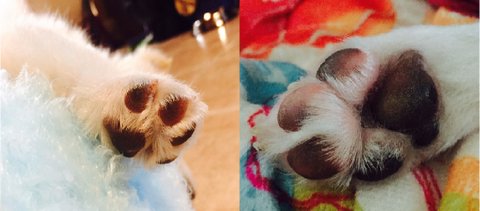 졸리 애기때 발바닥이랑 지금 5개월된 발바닥입니다 ㅎㅎ