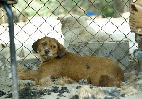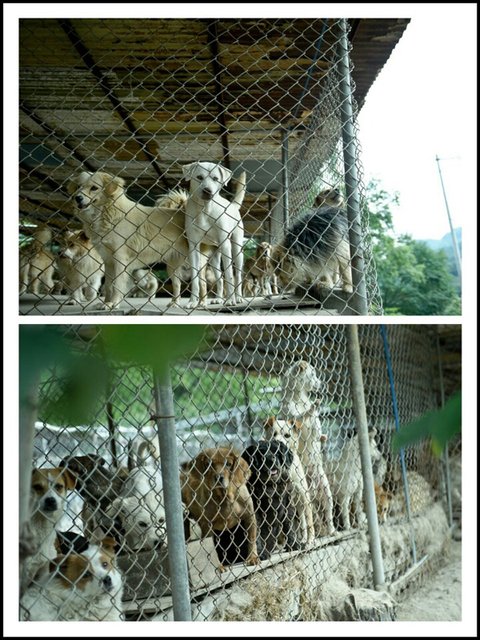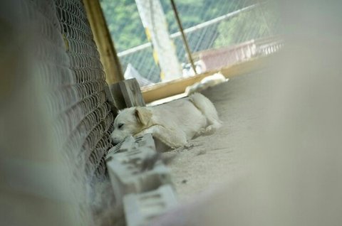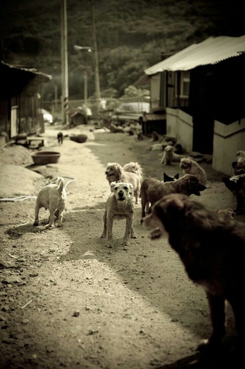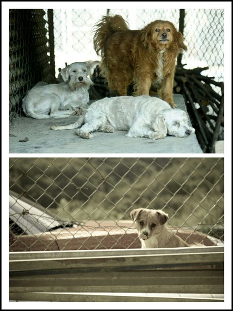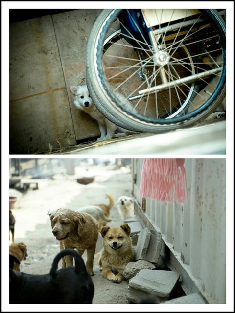 흙바닥에서 철망이 둘러쌓인 이 공간에서 함께 지내고 있습니다.
