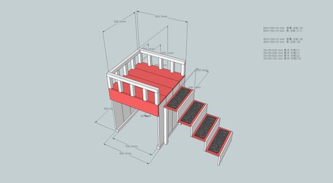 초안을 조금 더 발전시켜서 스케치업으로 만든 도안입니다