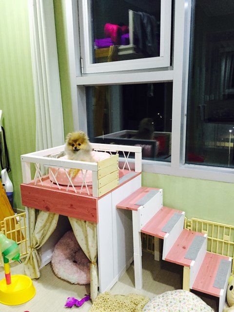 6개월 된 포메라니안 시월이를 키우고있는 26세 여자입니다. 새로 이사간 집의 창문이 높아서 창밖에서 무슨소리가 나도ㅎㅎ 귀만 쫑긋 하고 구경도 못하고 궁금해만 하는 시월이를 위해 나무 테라스를 제작했습니다~~ 제가 없는 시간에도 창밖을 보며 심심하지 않도록 시월이만의 집을 만들어주고 싶어서 그림을 그리며 구상하다가 결국 서투른 솜씨이지만 완성을 했습니다~^^*