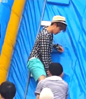 100현이가 다리에 쥐나서 못올라가고 가만히 서있으니까 찬10이가 올라가다말고 내려와서 다리 주물러줌ㅇㅇ