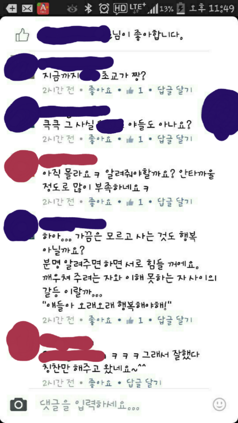 남색이 선생친구들이 남긴 댓글이고