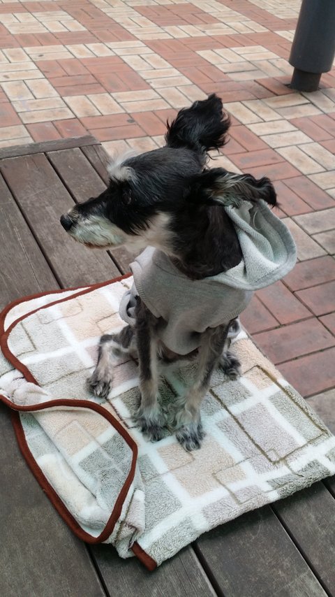 버림받아서상처때문인지 다른 슈나우져들에 비해 순했고, 천둥번개가치면 바들바들 떨고 안절부절 못하고 싸이렌소리만 들리면 울고 정말순한 강아지였어요
