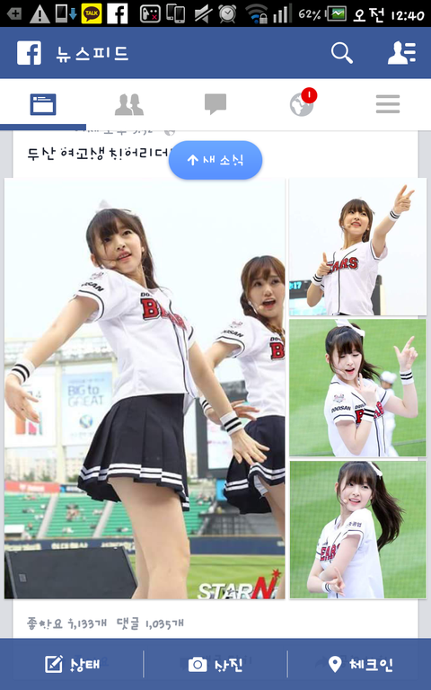 치어리더라고 뜸ㅋㅋ아직 신인이라 사람들이 잘몰라서진짜 치어리더인줄아는데댓글보니까 남자들반응짱좋아~!예쁘다는댓글죽널려있고 저쪽야구팬으로건너간다는사람들도많음ㅋㅋ치어리더가아니라 아이돌이지만 그래도 이쁘다해주고반응좋으니까뿌듯ㅎ