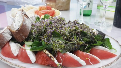 카프레제샐러드. 아 입에 침고여요.. 부드러운 치즈와 상큼한 토마토. 발사믹 드레싱까지..