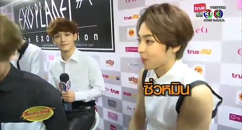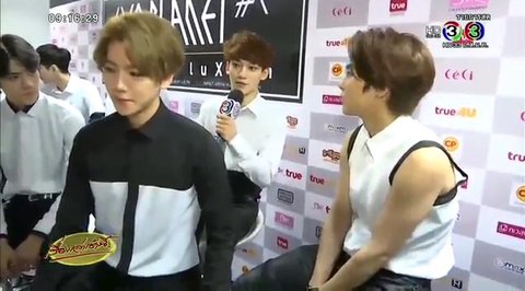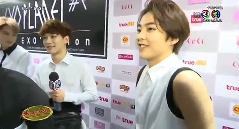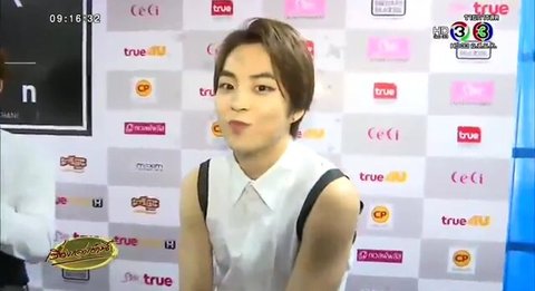 첸 : 어, 사실 저희 시우민 형이 제일 맏형이거든요. 맏형의.. 맏형이지만 정말 동안을 가지고 있어요. 그리고 행동하는것도 너무 귀엽고, 애교도 많아요.
