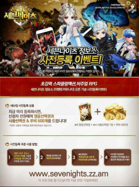 세븐나이츠 정보소 카페 오픈기념 사전등록 이벤트 진행중입니다 !!