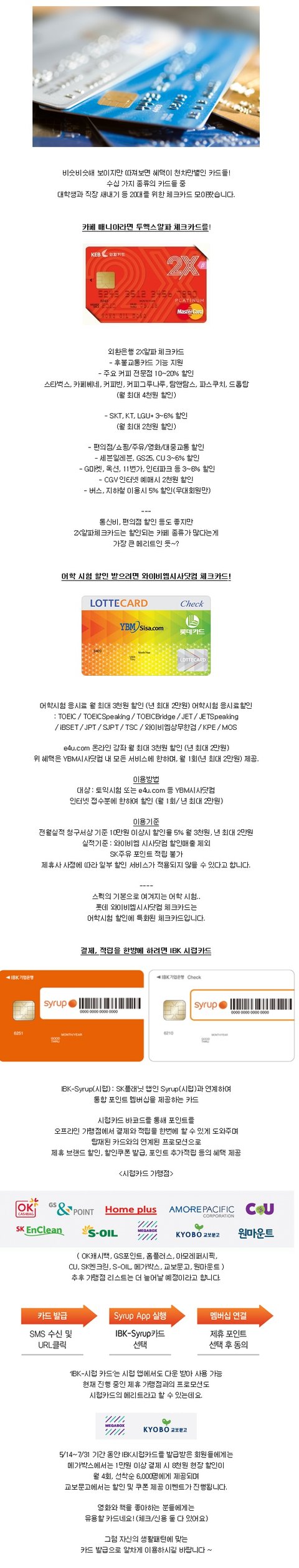 20대가 쓰기 좋은 체크카드 추천 좀 해주세요.