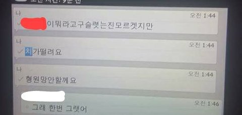 니랑 잔남자의 여자친구랑 전화까지 시켜주며 확신시켜주던 너가 ㅋㅋㅋㅋ 정말 대단한거 같더라 그것도 그 남자의 여자친구가 아니라 니 친구의 친구였으니 ㅋㅋㅋㅋ 그걸 믿었던 내가 아직도 한심하고 병신같에ㅋㅋ 자괴감을 참 많이 느끼게 해주더라고 네가
