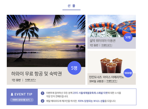 6, 7, 8월까지 계속 체크인 하면 세계불꽃축제 티켓을 준다네요ㅎㅎ
