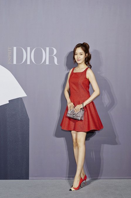 디올 레드 드레스와 메탈릭 디올라마 핸드백으로 공주공주하게 차려 입고 온 성유리