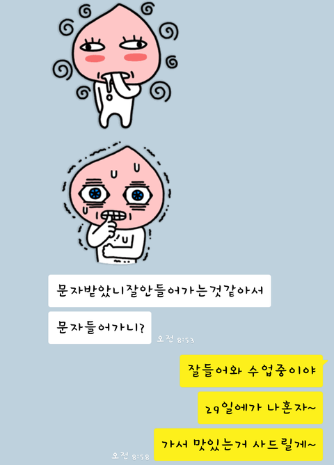 이번방학에 잠깐 한국에 들어가기로해서 기념품 준비했다고하니 좋아하시네요ㅎㅎ
