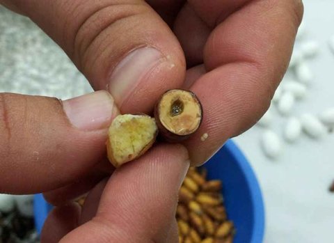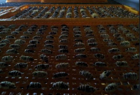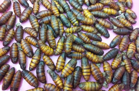 누에 5령때 동충하초 균을 접종시킨다.(허물을 한번 벗으면 1령)