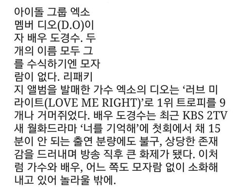[기사] 엑소에서 연기까지..안녕하세요, 엑소의 도경수입니다