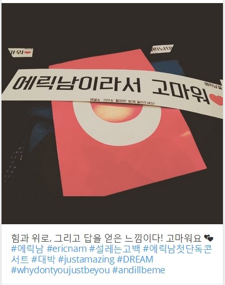 "에릭남이라서 고마워" 라는 카드를 모두 들고 앵콜때 응원해줘서