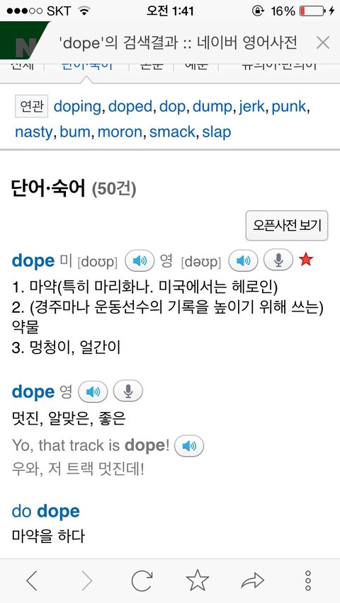 쩔어(dope)이렇게 되있잖아.. 궁금해서 찾아보니깐