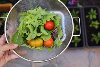 시골답게 뒷마당텃밭에서 저녁을 수확했어요.