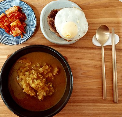 함박스테이크 올려서 카레~!
