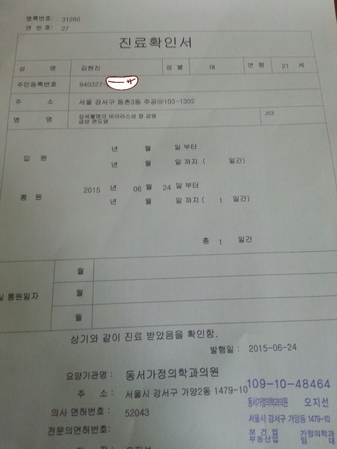 그래서 확인서를보여주니 , 병원어디갔었냐고 ,그병원 이상한거아니냐고, 이렇게말씀하셨습니다,
