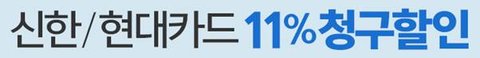 결제 카드를 신한, 현대 카드로 설정 시 11% 추가로
