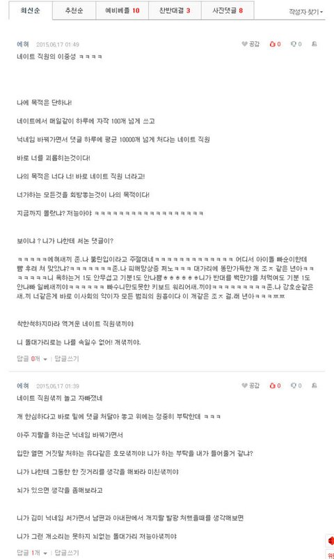 아래는 그 이상행위자의 댓글이예요. 이 게 온전한 정신을 가진 인간이 할 수 있는 말인지 우리 현명하고 똑똑하신 운영자에게 되묻고 싶네요.