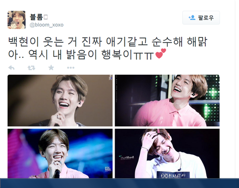 백현이 웃는거 .....