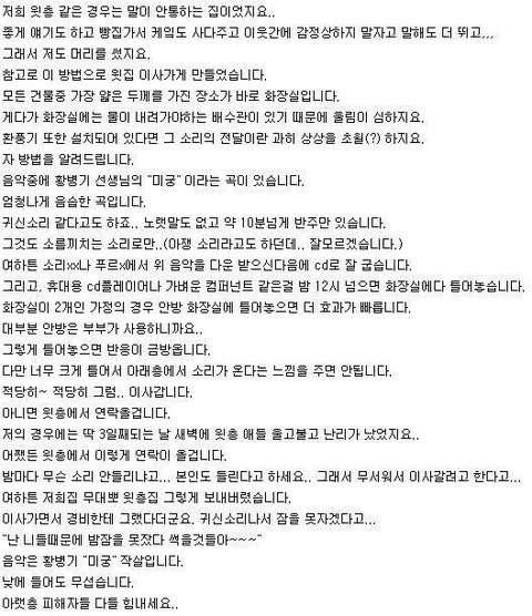 어이가 없었지만, 층간 소음 경험담과 조언을 받아 지속적으로 경비실을 통해 주의를 부탁해야한다고해서 그렇게하려고 했습니다.