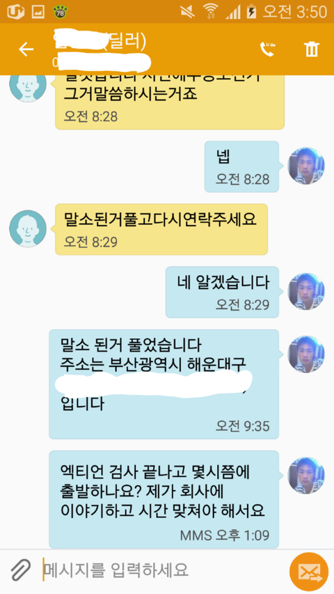 그래서 부산에서 올라 온지라... 알겠다고 하니 ...