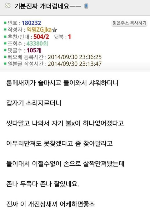 진상 룸메이트 정말 더럽네요