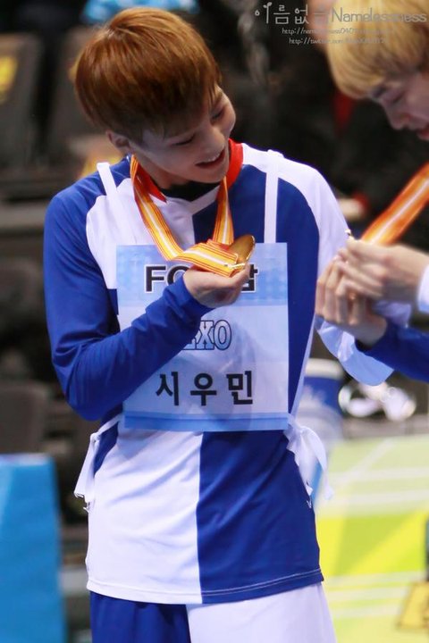 시우민 금메달보고 좋아하는거봐 ㅋㅋ
