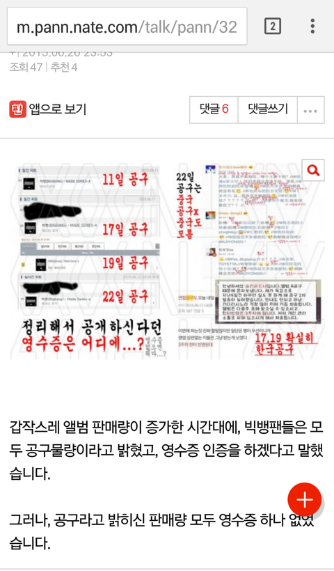 1. 빅뱅팬이 쓴 사재기의혹글