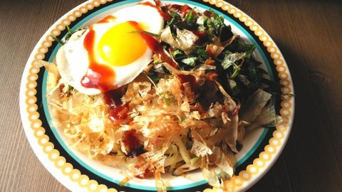 오코노미야키 덮밥입니다.