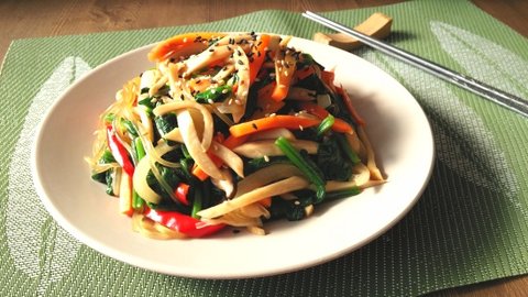 당면은 쫄깃하고 당근은 오독오독하고 시금치는 부드럽고 고추는 아삭하고!