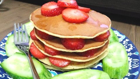 흔한 핫케이크에 괜히 딸기 깔아보기.