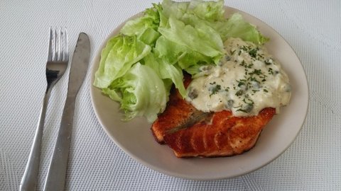 저 소스도 케이퍼랑 우유 사와서 직접 만들었어요. 파는 건 짜서 별로더라구요.