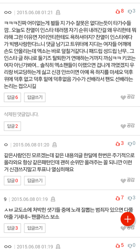 다른가수들 올라오면 몇탕째든 맞는말인데 우려먹는게 뭔상관이냐그럼ㅋㅋㅋㅋㅋㅋㅋㅋㅋㅋ 아니면 자기들 까인거 말하면서 우린 이랬는데 너넨 왜안이럼드립.... 이중성오져~!~!~~!^!~!~!^ 평생 정신승리하며 살아라