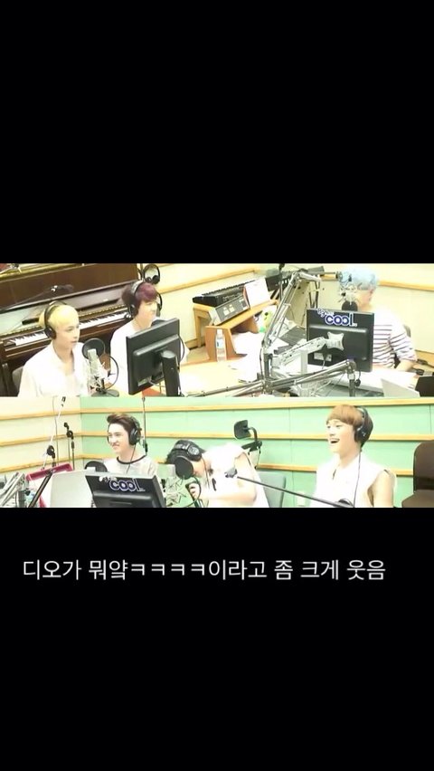 려욱dj : 왴ㅋㅋㅋ (왜 갑자기 웃냐는 뜻의 의미일듯) 이라고 물어봣으나 첸 디오가 못들은듯