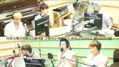 려욱 dj가 백현이한테 왜 웃엇냐고 물어보는것 같던데 이때 백현이가 려욱dj 한테" 론리나잇~!이라고 했어요 " 라고 하고 한번 더 불름!!!