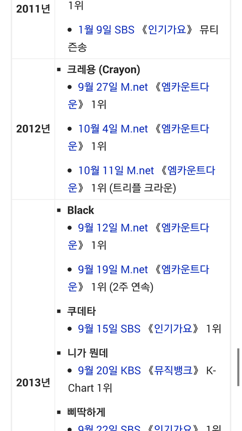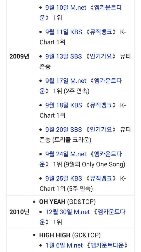 -뮤직뱅크 최초 같은가수 1,2위(1위 하루하루 2위 천국)