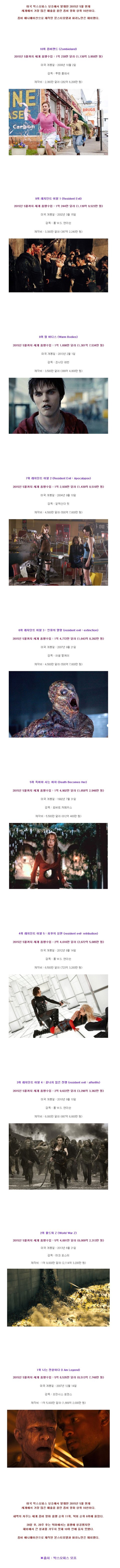 세계에서 가장 많은 수입을 올린 좀비영화 BEST10