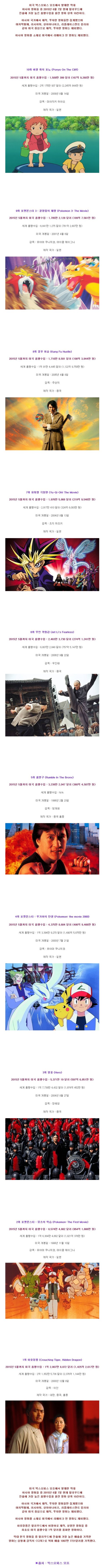 미국에서 가장 많은 흥행을 거둔 아시아영화 BEST10