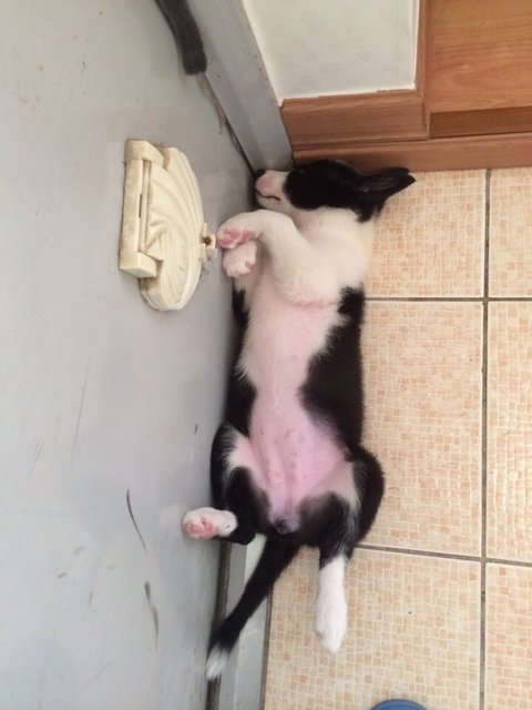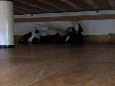 더워서 찬바닥 찾아간 듯 함.