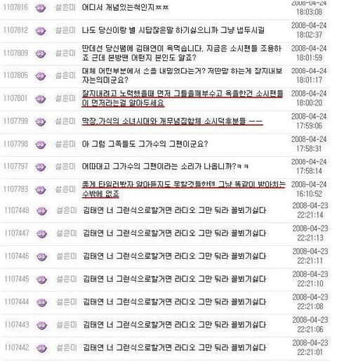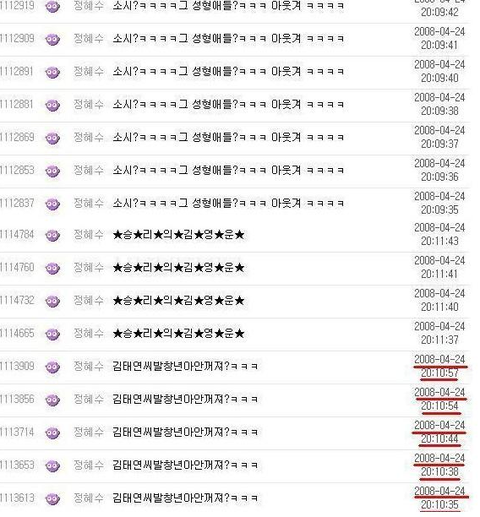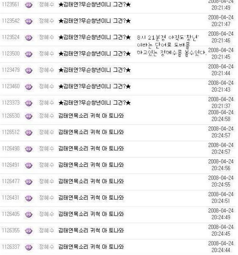 당시 태연이 보던 게시판 글들