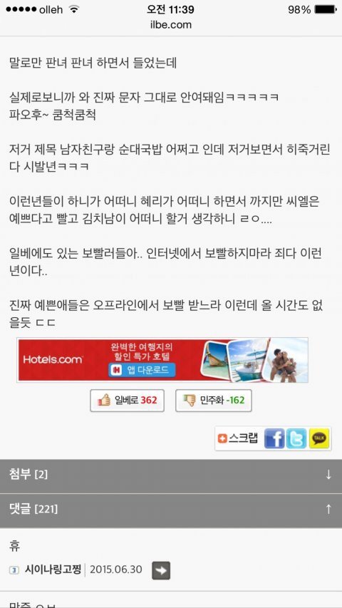 도촬해서 파오후 쿰쩍쿰쩍 (뚱뚱한 사람 놀리는 소리)이네 뭐네 해서 비아냥 거리고 있네요