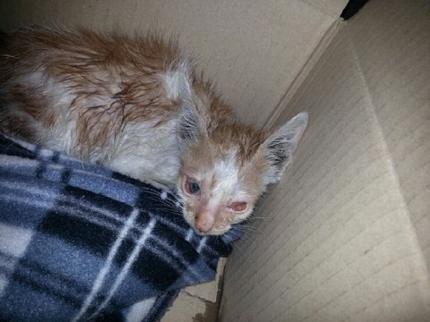 현재 제가 구조해서 봤는데........ 눈이.... 고름이 나오는것 같습니다.. 다행하게도 사료는 불려준거 먹습니다..