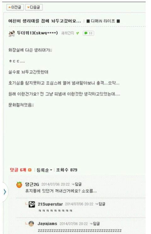 여친이 두고간 생리대 냄새를 맡아본 남자친구