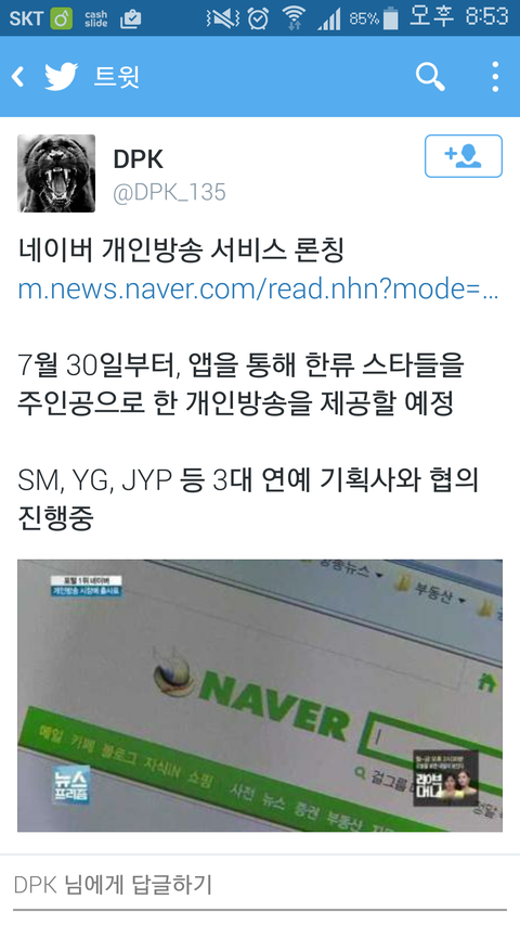 현재 초록창 개인방송 서비스 론칭중